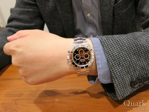 F様 この度はクォーク名古屋店をご利用頂き、誠にありがとう御座います。新作デイトナは、まだまだ品薄の状況が続いている為、今回タイミング良くご用意させて頂く事が出来たのも運命を感じますね。デザインの格好良さは勿論、耐久性に優れたセラミックベゼルになりますので、日常使いとしてご活躍頂けると思います。本当に格好良いですね~!またF様から嬉しい言葉まで頂き、大変恐縮で御座います。今後もご期待に添えれる様、努めさせて頂きます。お使い頂く中で、ご不明な点等が御座いましたら、何なりと私、垣見までご相談下さいませ。栄にお立ち寄りの際は、お気軽に遊びにいらして下さいね。またF様にお会い出来る日を楽しみにしております。