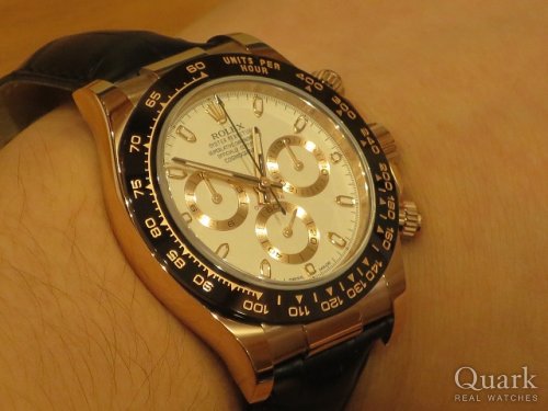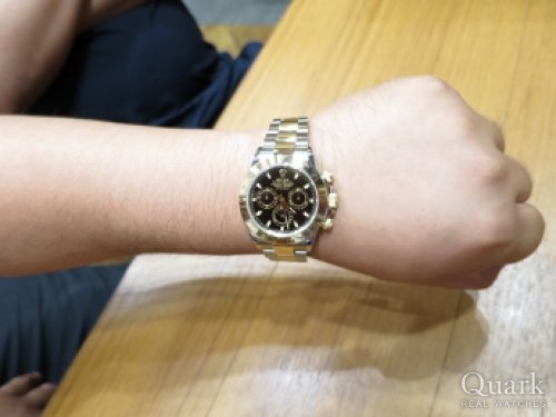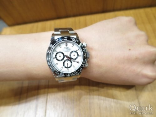 ついに念願のデイトナを手に入れました。自分の腕に着いているのを見ても、やっぱりカッコイイ!!大事に使用したいと思います。クォークのスタッフの方にも感謝です!