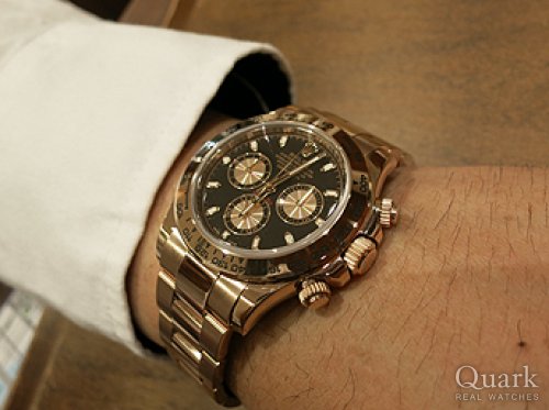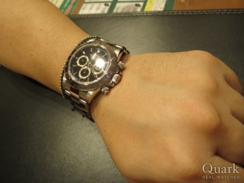 K様 この度はクォーク名古屋店をご利用頂き、誠にありがとう御座います。デイトナは、ロレックスユーザーの中でも憧れる方が多い素晴らしいモデルです。中でも金無垢モデルは別格の高級感があり、目立つ事間違いないですね!イエローゴールドにはない、肌に馴染みやすく優しい印象の色合いは素敵ですよね。似合うかなぁ~と仰ってましたが、K様にとてもお似合いでしたので、自信を持って見せびらかせて下さい!(笑)以前にお話しさせて頂いてから、御購入までK様のご担当をさせて頂く事が出来、大変光栄に思っております。今後のアフターサービスもしっかりとサポートさせて頂きますので、ご遠慮なく御相談下さいませ。またお会いできる日を楽しみにしております。