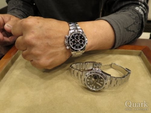 K様、いつもクォークなんば店をご利用頂きまして誠に有難うございます。新型モデル発表後、デイトナステンレスモデルの相場は予想通り上昇しております。購入のタイミングを見極めるのは非常に難しくなっていましたがK様のご購入直後にさらに価格が上がった事を考えると、良いタイミングだったのではないでしょうか?Ref.116520黒は今後の動向が楽しみなモデルです。人気、資産価値共にこれからも上がっていくことが期待できますので末永くご愛用頂ければ幸いでございます。次回は杉崎と共にご対応できればと思っております(笑)。また大阪にお越しの際はクォークなんば店に遊びにいらして下さい。お待ち致しております。 クォークなんば店 佐野