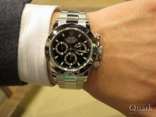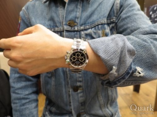 T様、この度はクォークなんば店をご利用頂き誠に有難うございます。デイトナ Ref.16520は文句なしにかっこいいですね!現行モデルととてもお悩みでしたが、鏡面部分が少なく針やインデックスがシャープなデザインの旧型モデルがT様の雰囲気やお好みにマッチしていますね。流通量が少ない中、今回はタイミング良くご納得頂ける一本をご案内させて頂く事が出来て私も大変光栄でございます。今後ますます手に入りにくくなる事が予想されるモデルですので、末永くご愛用頂ければ幸いでございます。また、ブレス洗浄を無料で承っておりますのでお仕事帰りにお気軽にお立ち寄りくださいませ。T様のご来店をスタッフ一同、心よりお待ち申し上げております。 クォークなんば店 西村