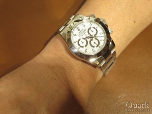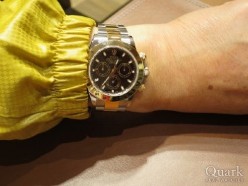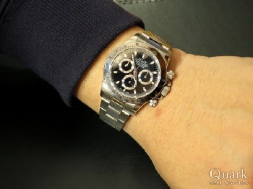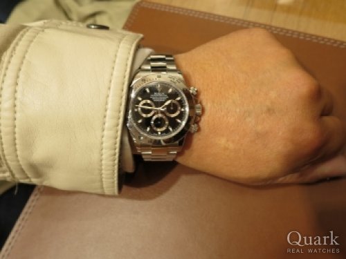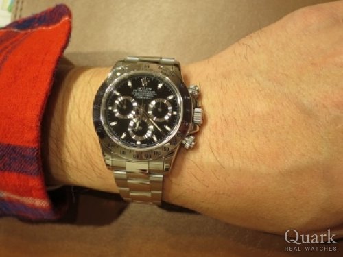 O様 この度はクォーク梅田店をご利用頂きまして、誠にありがとうございます。長い間ご検討をされていたデイトナですが、お使いいただいていかがでしょうか?やはり、これまで頑張ってきたご自身へのご褒美は大切だと思います。新しいお仕事は、スーツを着て、デスクワークがメインだとお聞きしましたが、デイトナのブラック文字盤はスーツとの相性は抜群ですので、新しい仕事のよき相棒になってくれると思います。店頭にてブレスレットの洗浄など、メンテナンスも承っておりますので、お近くにお越しの際は是非梅田店にお立ち寄り下さい。O様のまたのご来店を心よりお待ちしております。 クォーク梅田店 松原