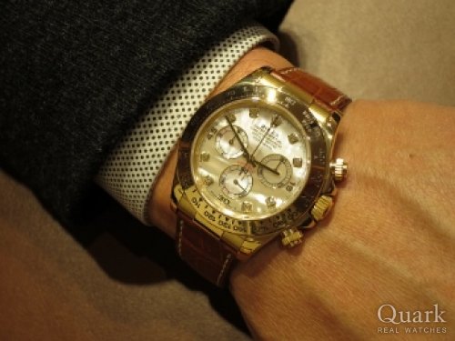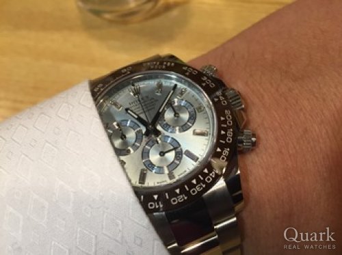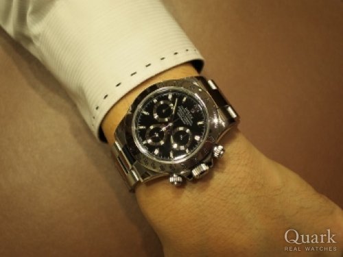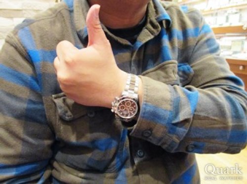 H様 いつもクォーク仙台店をご利用くださいまして誠にありがとうございます。ロレックスはモデルそれぞれに魅力があり、長く悩んでしまうことは珍しいことではございません。むしろ、たくさん悩まれた分、愛着がさらに湧きそうで時計としても嬉しいことかもしれませんよ(笑)。ご納得頂いた上でのお買い物をして頂くことが、私共としても嬉しいことでございますので、H様に喜んで頂いて安心しております。ご購入当日は休みを頂いておりまして大変失礼致しました。H様の決断の時までしっかりご案内したかったので、残念な気持ちでございます。また、嬉しいコメントまで頂きまして誠にありがとうございます。店頭にてサイズ調整、ブレス洗浄を無料で承りますので、是非また遊びにきてください。デイトナをさりげなく輝かせるH様にお会い出来る日を楽しみにお待ち申し上げております。これからは、ご愛用頂いておりましたサブマリーナーとはまた違ったデイトナの魅力を楽しんで頂けましたら幸いでございます。今後とも末長いお付き合いの程宜しくお願い申し上げます。