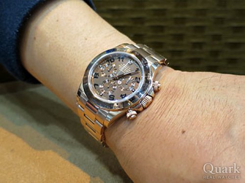 正規店ではまず見れることがなく、通りがかりでたまたま見つけ、衝動買いをしてしまいました。また、デイトジャスト、サブマリーナーを持っていて、新たなバリエーションとしてデイトナが欲しかったこともあり購入を決めました。コンビモデルに比べ、とてもつけやすいです。これから、大切に使っていきます。