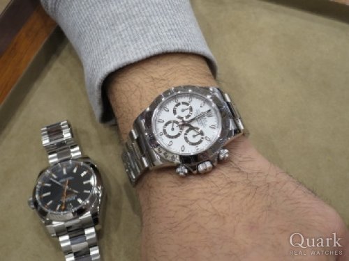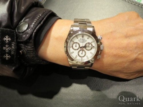 Y様 この度はクォーク梅田店ご来店並びにご利用頂き誠に有難う御座います。 トップモデルのデイトナは憧れの的です☆高級感とスポーツ感が高く、白の文字盤が爽やかさを引き立たせる絶品!!大変良いお買い物ですね♪また、ブレスの洗浄等も承っておりますので、お近くにお越しの際はお立ち寄り下さいませ。お待ちしております。  クォーク梅田店 平田