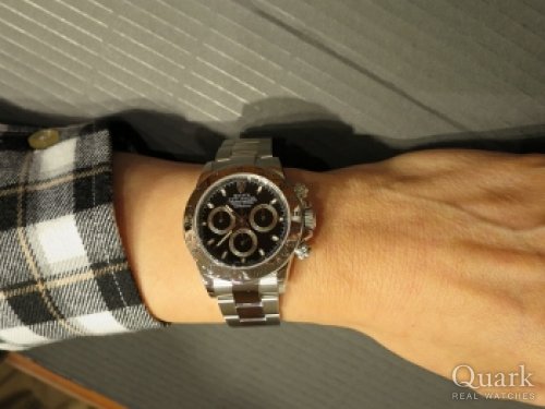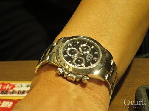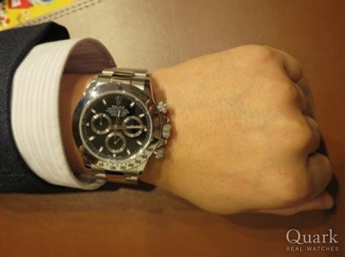 クォーク心斎橋店でデイトナSS黒 Usedを購入しました。買った理由はロレックスのフラッグシップ機であること。グレードの高さ、細かい所までよく作り込まれていること。防水性に優れていること。とにかく丈夫なところ。1回買えばオーバーホールを繰り返せば一生使えます。