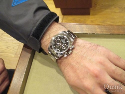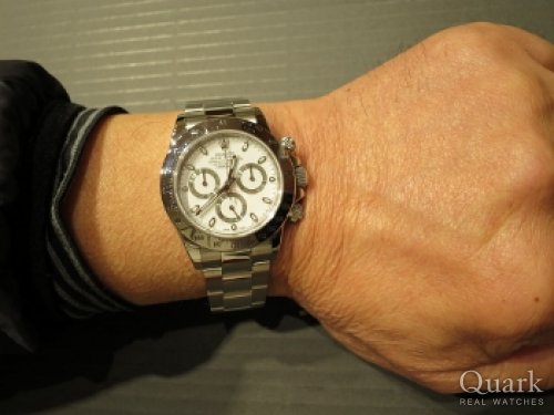 S様、この度はクォーク福岡パルコ店をご利用頂き、誠にありがとうございます。初めてのご来店から約10日間、S様の念願であった『DAYTONA / Ref.116523 / ホワイト・ブラックダイヤル』のご購入おめでとうございます。現行モデルでありながらもクラシカルなデザインが、お洒落なS様にはすごくお似合いです。S様には度々ご来店頂き、わずかな時間ではありましたが、本音で語り合えることができて私も非常に嬉しく思います。ブレスレットの調整や洗浄、その他メンテナンス等のアフターサービスもしっかりと対応させて頂きますので、今後とも末永いお付き合いの程、宜しくお願い致します。
