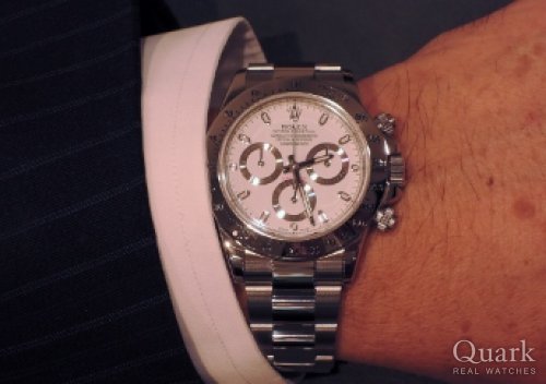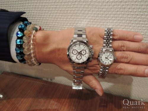 Y様 この度はクォーク仙台店をご利用くださいまして誠にありがとうございます。引き締まったブラックダイヤルにデイトナならではの存在感、素敵でございますね。男らしく、高級感漂う印象がY様に大変お似合いでございました。お渡しまでお時間を頂きまして大変失礼致しました。Y様に気に入って頂けるか心配しておりましたが、気に入って頂けたご様子で安心致しました。オーバーホールはいつまでもご愛用頂く為に大切なメンテナンスでございます。しかしながら、その際は2、3ヵ月お手元から離れる事となりますので、今回のデイトナが心強い味方になってくれそうですね。お使い頂いてご不明な点等ございましたらお気軽に高橋までお申し付けくださいませ。また、サイズ調整、ブレス洗浄を無料で承っておりますので仙台にお越しの際はぜひお店にも遊びに来てください。もちろん、デイトナに続く新たなロレックスをご検討の際は、張り切ってお探し致しますのでご安心くださいませ!!(笑)今後とも末長いお付き合いの程宜しくお願い申し上げます。