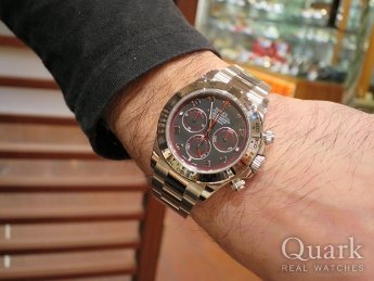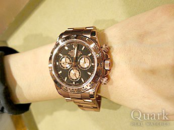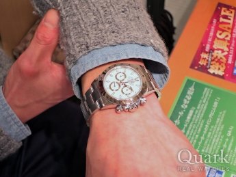 H様 いつもクォーク仙台店をご利用くださいまして、誠にありがとうございます。金無垢ならではの重厚感や、ピンクゴールドの上品で美しい色合いが素敵なハイクラス・デイトナでございますね。肌に馴染みやすいお色目でございますので、多くの場面でお使い頂けることと思います。また、以前ご購入くださいました「Ref.116234NG デイトジャスト ブラックシェル」もそうでございますが、H様の雰囲気に大変お似合いでございます。H様のお時計選びのセンスは抜群でございますね! 今後もお手伝いさせて頂きますので末長いお付き合いの程、宜しくお願い致します。 クォーク仙台店 古賀