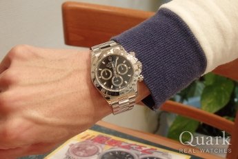 M様 この度は、クォーク神戸店をご利用頂き誠にありがとうございます。スポーツモデルのなかでも圧倒的な存在感を放つデイトナは、一生ものとして相応しい1本です。年式が新しく状態も良いのでオススメさせていただきました!これからも、末永くご愛用頂ければ幸いでございます。また、ブレス洗浄などのアフターサービスも無料で行っておりますのでお気軽にお申し付け下さいませ。今後とも、クォーク神戸店を何卒宜しくお願い申し上げます。 クォーク神戸店 増田