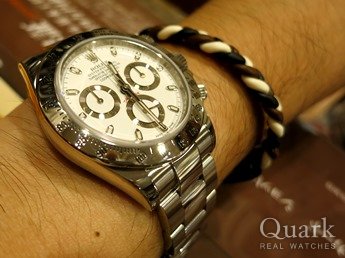 O様 度々クォーク仙台店をご利用くださいまして誠にありがとうございます。確かに、デイトナを着けている様子を写真などで眺めて見ますと、格好良さが非常に良く分かりますね!既にお持ちのエクスプローラーIとも使い分けが出来る1本でございますので、ロレックスライフの幅が大きく広がり、今後が大変楽しみでございます。将来的には黒文字盤へ交換する楽しみもございますね!近くへお越しの際はお気軽にお店へ遊びにいらしてくださいませ。末長いお付き合いの程、宜しくお願い申し上げます。