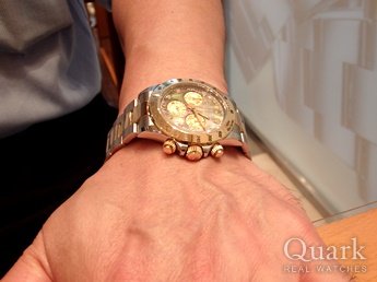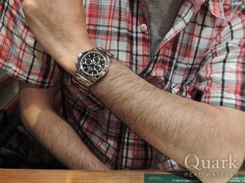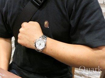 T様 台風一過でこの夏一番の蒸し暑さの中、クォーク広島店へお越しくださり誠に有難うございました。空調の利いた店内で日の大半を過ごす私からすると湿度90%気温30度の屋外は蒸し風呂のようです。そんな暑くて外出が憂鬱になりそうな日が2ヶ月くらいは続くと思いますが、新たな相棒を手に入れられたT様は暑さも吹っ飛ぶのではないかと想像しております。ピンクゴールドはイエローゴールドほど派手さはないですが上品な高級感が漂っています。ピンクゴールドとブラックダイヤルの相性もよく末永くご愛用頂けると確信しております。前回対応致しました西尾に変わり、私、岩田がT様のロレックスライフのお手伝いをさせて頂ければと思っております。今後ともクォーク広島店を宜しくお願い致します。 クォーク広島店 岩田