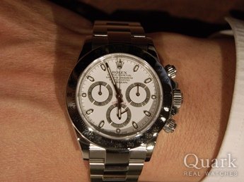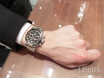A様 この度はお忙しい中ご来店頂きまして、誠に有難うございます。気さくにお話下さいましたA様、デイトナの白文字盤が本当によくお似合いでいらっしゃいました。デイトナはロレックススポーツモデルの中でも、唯一のクロノグラフを採用したデザインが存在感抜群のお時計になります。是非毎日ご使用頂きまして、最高のロレックスライフをお過ごし頂けましたら幸いでございます。ブレスレットの調整、洗浄はいつでも無料で行わせて頂きますので、横浜にお越しの際はお気軽にお申し付け下さい。今後とも末永いお付き合いの程、宜しくお願い申し上げます。 クォーク横浜店 尾崎