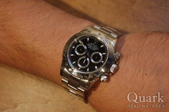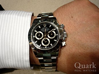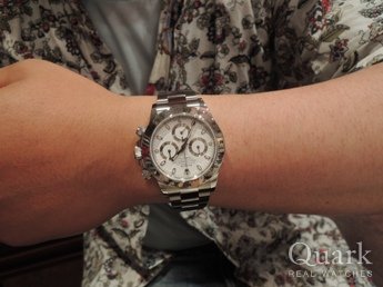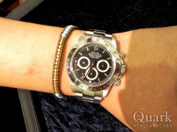 ロレックスがF1のメインスポンサーとして出ていて、前々から魅力を感じていました。F1が好きな私からするとデイトナはピッタリなモデルだと思いました。オメガのスピードマスターと悩みましたが、先輩にクォークさんのアフターメンテナンスは良いと薦められたので、ロレックスを選びました。元々欲しかったので、着けることが出来て嬉しいです。 これからも宜しくお願いします。