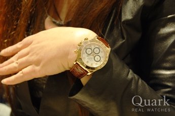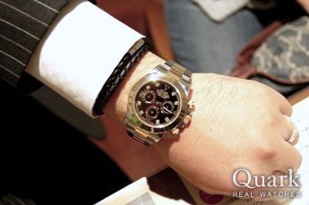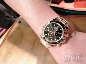 金が昔から好きで、サブマリーナとも悩みましたが、サブマリーナに比べ全体的にシャープな印象があったので、デイトナにしました。又、スポーツモデルで最高峰のモデル、歳を重ねても似合うと言う点も決め手でした。