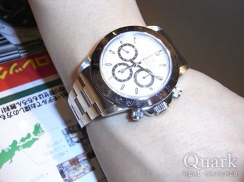 諏訪の地元EPSONで本当はSEIKOを購入して地元に貢献しなければならないのにROLEXという世界最高峰のブランドの虜になってしまいました。初めは他店で検討しましたが、クォーク様の価格と保障が余計購買意欲を掻き立てました。勇気をしぼって電話をしましたが前野様をはじめ素晴らしい接客態度や対応のここなら少し高くてもお世話になろうとその場で決心しました。ただ売り付けるだけではなくお客様の目線にたった素晴らしいお店です。これからもよろしくお世話になろうと思っております。これからはDAYTONAを追い越せるような自分磨きをしたいとおもっております。