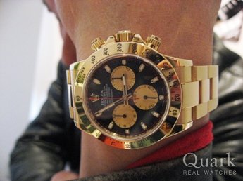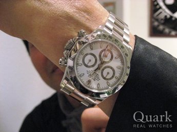 昨年にステンレスのデイトナを購入しましたが、 先日店頭に遊びに来た時に、このデイトナに 出会い、一目惚れをしました。いつもクォーク さんには良くして頂き、感謝しております。 これからも宜しくお願いします。
