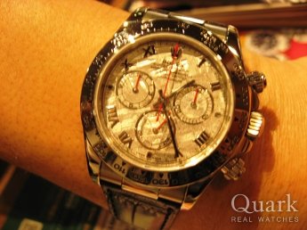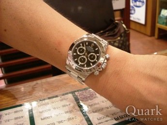 時計が好きで沢山のブランドの時計を持っているが、 ロレックスは今回が初めての購入です。ネットや雑 誌などで、メテオライトの文字盤に一目惚れをして、 革ベルトも気に入ったので、デイトナに決めました。 新品・中古を見てみても、メテオライトの物が少なく、 ネットでクォークさんに在庫があるのを知り、足を 運びました。
