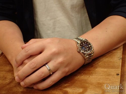 H様 この度はクォーク上野本店をご利用頂き、誠にありがとうございました。連日のご来店も重ねて感謝申し上げます。久方ぶりのデイデイトとの再会でしたが、如何でしたでしょうか。腕時計との離別のエピソードはおいたわしい限りでしたが、今回ベゼル周りをダイヤモンドでより華やかに、着けられていた時代を想い起こすようなモデルをご案内でき、喜ばしく思います。御徒町界隈では昔から馴染みがお有りとの事でしたので、ご友人様方とお会いになられる際は是非Ref.18348Aをお供させて下さいませ。暑い日和が続きますので、汗など気になるようでしたら、お気軽にお立ち寄りください。程塚がしっかりとお手入れ致します。また、その後の反響など拝聴できれば幸いですのでいつでも遊びにお越しくださいませ。H様のまたのご利用、心よりお待ち申し上げております。