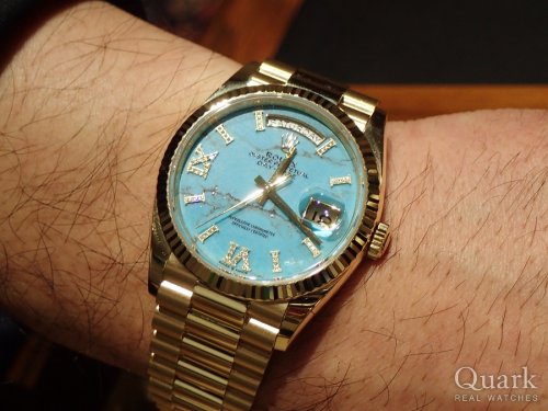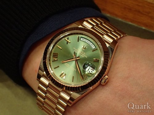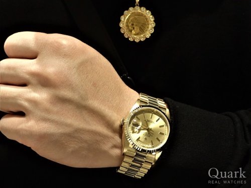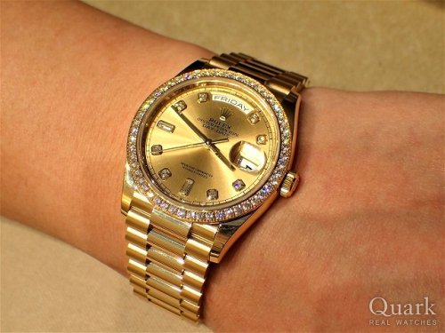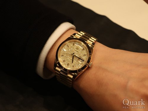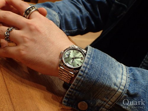 M様 この度は誠に有難うございました。昨年末にオーダーを頂いてから中々ご希望のお品の入荷が無く、大変お待たせ致しました。イエローゴールドとシャンパンダイヤルの相性は非常に良いですし、スタンダードモデル最高峰のデイデイトならではだと思います。今後もお役に立てるよう尽力しますので、今後共どうぞ宜しくお願い致します。クォークサロン大阪 宮崎