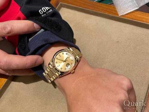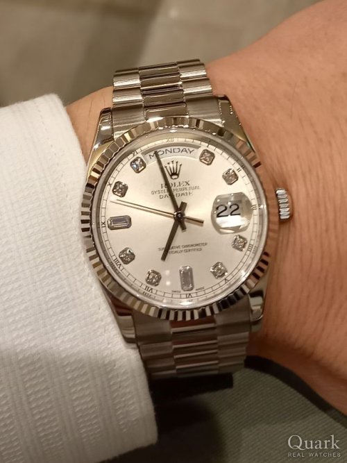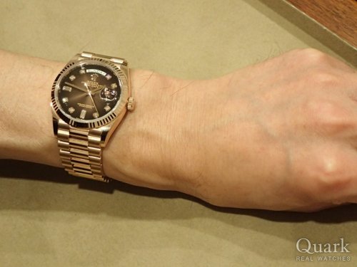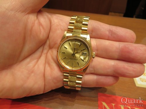 いつの頃か、最後はデイデイト金無垢のバークが欲しいと思っていました。QuarkさんのHPで、どセンターの18248バークを発見、購入させて頂くに至りました。バークの渋い輝きが最高です。 矢島さん、日笠山さんいつもありがとうございます。