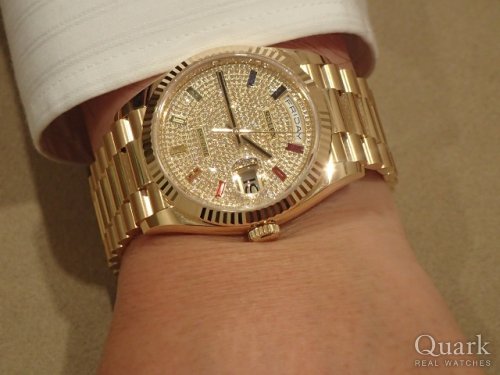 高須さんとの付き合いも20年以上となりましたが、いつも気持ち良く購入させてた頂いております。金無垢デイデイトのパヴェ、レインボーサファイヤ!その美しさに魅了されました。