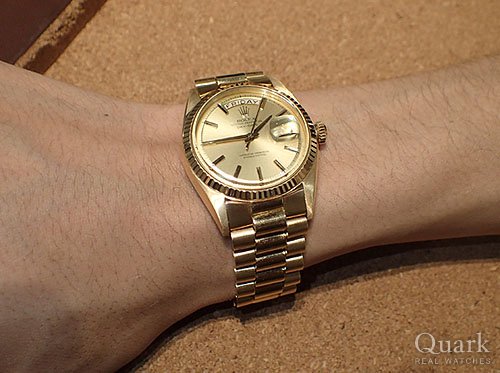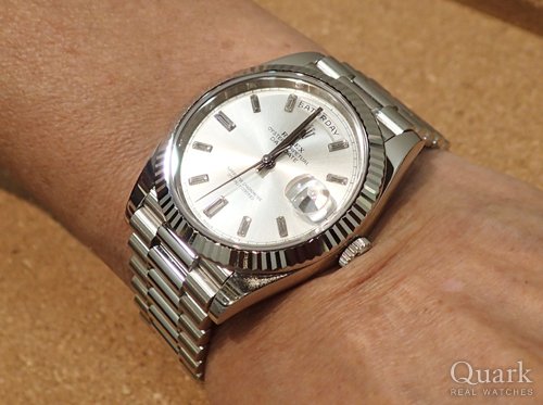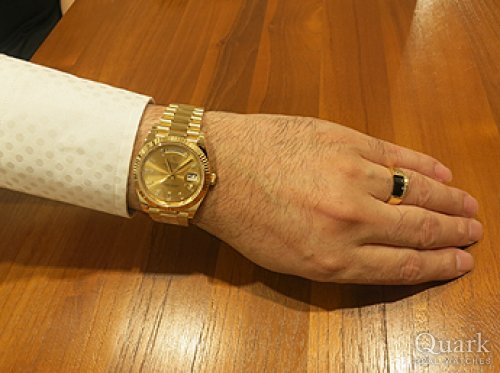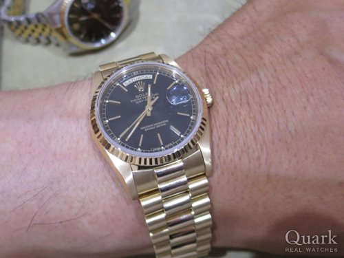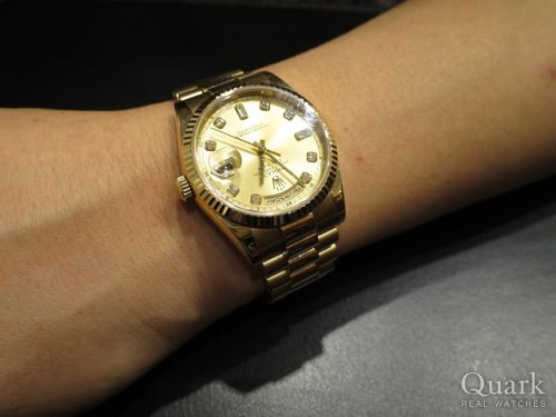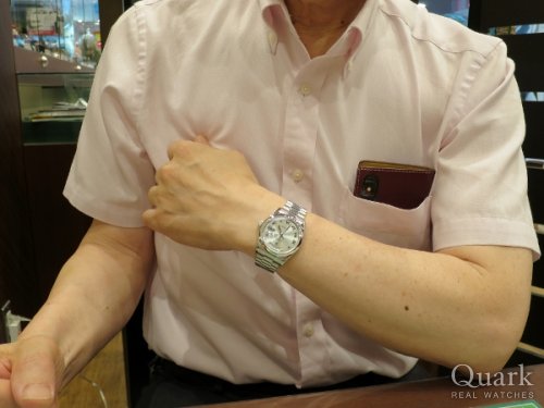 I様 この度はクォーク梅田店をご利用頂きまして誠にありがとうございました。I様がずっと憧れていたDAY-DATEを購入するお手伝いが出来たこと大変光栄でございます。お求め頂きましたDAY-DATE Ref.118238Aはロレックスの最上級に位置するモデルですので、その存在感は抜群です!これからずっとI様の腕元で華やかに輝き続けると思います。お持ちのスポーツモデルとはまた違った雰囲気を楽しんで頂けると思いますので、末永くご愛用くださいませ。I様のロレックスライフがよりよいものとなりますよう、私もしっかりサポートさせて頂きますので、何かご不明な点がございましたら、お気軽にご連絡下さいませ。今後ともよろしくお願いいたします。
