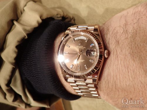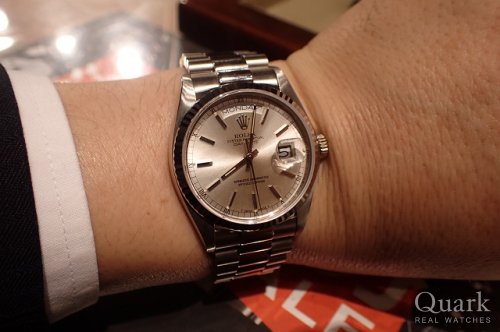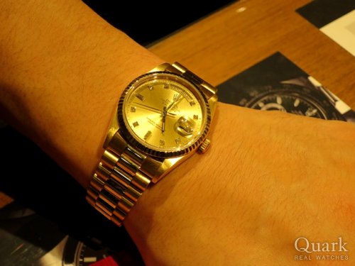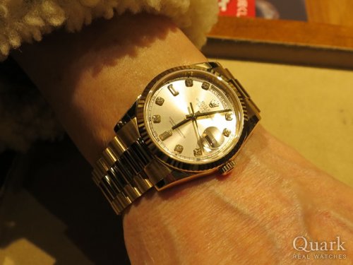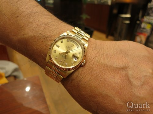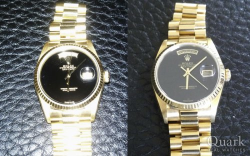 H様 いつもクォ―ク上野本店をご利用頂き誠にありがとうございます。本年も宜しくお願いいたします。前回のピンクゴールドのデイデイトに続き、今回はデイデイト Ref.118238Aブラックダイヤルのご購入のお手伝いが出来た事、大変嬉しく思います。前回同様に日付表示に加え、曜日表示を備えるデイデイトは金無垢モデルのみで展開され、ロレックスの最高峰モデルとしていつの時代も多くの方が憧れを抱いている人気が高いデイデイトです。今回は10ポイントのダイヤが更に目立つ黒文字盤の為、高級感を存分に楽しんで頂けるお時計かと思います。ご使用頂きしっかりとサポートさせて頂きますのでまた、お時計の事で何かございましたらお気軽にご相談下さいませ。また東京に来られた際は遊びにいらして下さい。宜しくお願いいたします。
