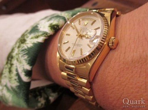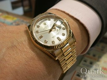 W様 度々クォーク仙台店をご利用くださいまして誠にありがとうございます。私がクォーク上野本店勤務時に初めてW様にお会いさせて頂き、それから数年後の現在も、こうしてW様とお付き合いさせて頂けますことに感動を覚えている次第でございます。以前お求めくださいましたロレックスが、華やかな輝きを放つデイデイトに生まれ変わりましたね~。しかも今回の1本は、輝きのみならず通好みの美しいケースライン。見る人が見れば「おぉ~っ」という反応があるはずです!その反応にW様が驚かれるのでしょうね~笑。「もうしませんから(笑)」という一言にW様の大きな喜びを感じますと同時に、私はこれまでのお付き合いに感謝致しまして、そして今後の末長いお付き合いを心より願っている今日この頃です。近くへお越しの際はお店へ遊びにいらしてください。今後とも何卒宜しくお願い申し上げます。