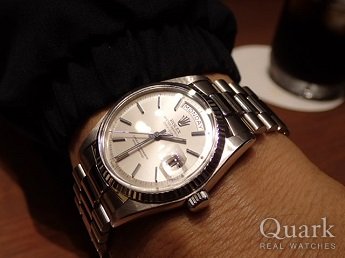当初は山崎さんにデイトジャストRef.1600を探してもらっていましたが段々と憧れのデイデイトRef.1803/9に気持ちが変わっていきました。 かなりの予算オーバーでしたが気持ちを抑えることができず実物を見せてもらったところWGの質感や完璧なデザインに一目惚れしてしまいました・・・・ 購入当日は希少なこのモデルを二つ並べて見せていただき長時間に渡り嬉しくも悩ましい時間を有り難うございました(笑) 選び抜いた最高のデイデイト1803/9を大切にしますね!!
