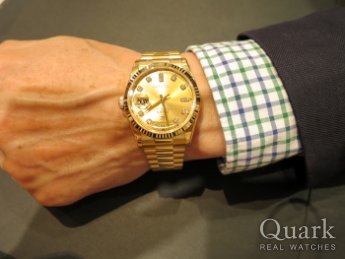 コンビモデルの購入も検討しましたが、金無垢の存在感に惹かれて、デイデイト(Ref.18238)イエローゴールドを購入しました!!
