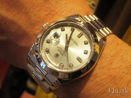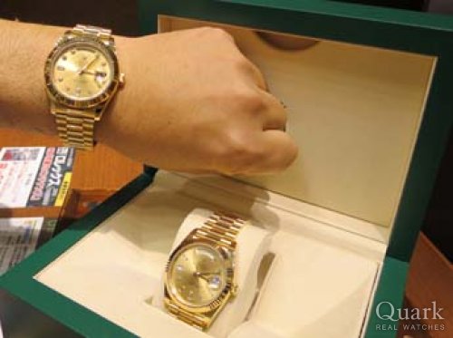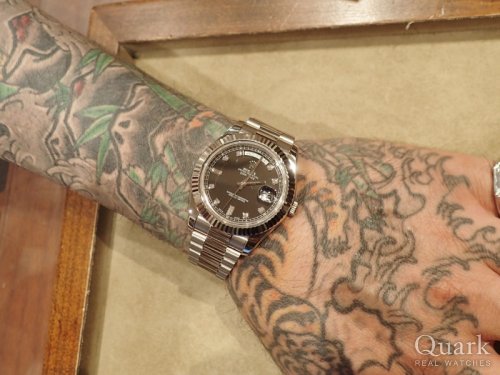 H様、この度はクォーク梅田店をご利用頂きまして誠に有難うございました。日頃より御贔屓下さり心より感謝を申し上げます。この度お選びいただきましたのは、まさに新年に相応しいモデルであります、オールWGのデイデイトII(Ref.218239)でございますね。H様もおっしゃられております通りまさに金の塊ですよね。凄まじいオーラと存在感で他のモデルとは比較になりません。またこの珍しくユニークなブルーウェーブ文字盤がなんとも魅力的でずっと見ていられますね。やはりどもモデルもそうですが、実際に手に取って見てみないと本当の素晴らしさはわかりませんね。H様の雰囲気やお召し物にも本当にマッチされておりとてもお似合いでございました。新たな相棒として末永くご愛用頂けましたら幸いです。今後も最大限サポートさせていただきますので、何なりとご用命くださいませ。本年も何卒宜しくお願い申し上げます。