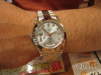 初めはデイトナが良いと思っていたが、プラチナを付けている方と話をする中でデイデイトに魅かれ購入を決めました。