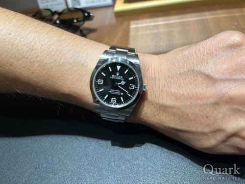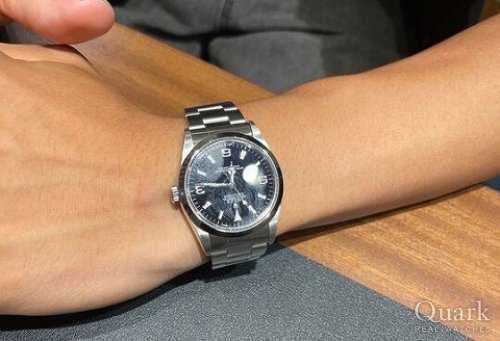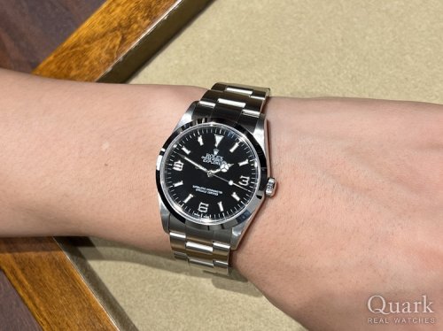 F様、この度はクォーク仙台店をご利用いただきまして誠にありがとうございました。この度お選びいただきました『EXPLORER I Ref.214270』は、現在は生産が終了した39mm径ケースのエクスプローラーIです。エアキングRef.116900とケースサイドこそ似ておりますが、ダイヤルデザインは勿論、厚みも異なりますので、着用感もまたひと味違ってまいります。『30歳を前にROLEXを』という節目を機に、しっかりと吟味してご購入いただきました1本でございますので、是非末永くお楽しみいただけますと幸いです。なお、私どもではブレス洗浄サービスを行っておりますので、お近くへお越しの際はお気軽にご用命くださいませ。今後とも末永いお付き合いのほど、よろしくお願い申し上げます。