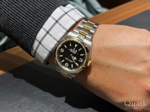 T様、この度は私どもクォーク仙台店をご利用くださいまして誠にありがとうございます。この度T様にお求めいただきました「EXPLORER I Ref.224270」は、2023年のモデル誕生70周年のタイミングで初登場した、40mm径の大型ケースを有するエクスプローラーでございます。シンプルで視認性の高いデザインは旧型モデルを踏襲しておりますが、ラグやブレスレット幅にも改良が加えられた他、リューズサイズが大きくなり、より使い勝手が良くなっております。また、新型キャリバーを搭載した事で耐磁性や精度、安定性など全体的なスペックが向上しているのは勿論、パワーリザーブも約70時間への延長を果たし、更に実用性が高くなりました。どれもさりげない進化に見えますが、ロレックスの絶え間ない革新を強く感じられる1本ですので、是非末永くご愛用いただけますと幸いです。なお、私どもではブレス洗浄サービスを行っております。お住まいこそご遠方ですが、仙台駅近くへお越しの際は是非お立ち寄りくださいませ。今後とも末永いお付き合いのほど、よろしくお願い申し上げます。