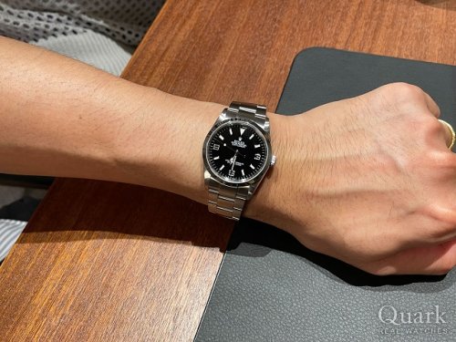 T様 この度は数ある時計店からクォーク名古屋店をご利用いただき誠にありがとうございます。ご購入いただきました『Ref.124270 EXPLORERⅠ』初期モデルから引き継がれる高いデザイン性で、この3・6・9のアラビア数字のインデックスはROLEXの中でもアイコン的存在で人気のモデルでございます。デザイン・機構がシンプルなロレックスをお探しのT様にピッタリのお時計だと存じます。またブレス洗浄、タイムチェック、も無料で行っておりますので、お近くにお越しの際は遊びにいらしてくださいませ。お使いいただく上で何かご不明な点等ございましたら、また久保までご相談ください。