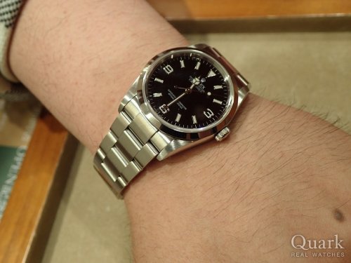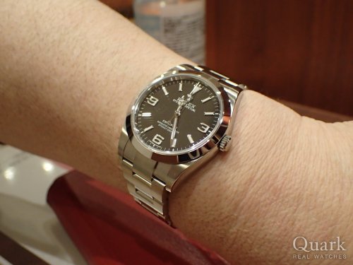 Y様 いつもクォーク上野本店をご利用いただき誠にありがとうございます。念願のEXPLORERⅠのご購入おめでとうございます!ダイヤルに加え、インデックスのカラーも艶と深みのあるブラックとなり、フラットでシャープな印象を併せ持つデザインがお勧めのお時計となります。年々コンディションの良い個体も少なくなっておりますので、タイミング良くY様にご紹介出来た事、私も嬉しく思っております。また、ブレスレットの洗浄及び調整も無料で行っておりますので、お近くにお越しの際は遊びにいらしてくださいませ。お使いいただく上で何かご不明な点等ございましたら、また林までご相談ください。今後とも末永いお付き合いの程よろしくお願いいたします。
