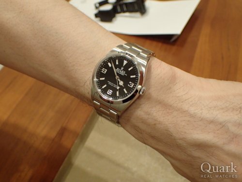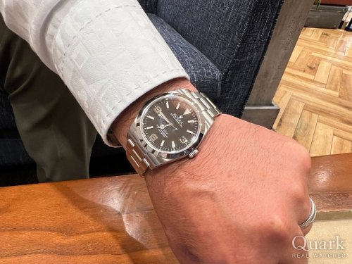 39㎜のEXPLORER Iより36㎜のEXPLORER Iの方が文字盤の収まり(インデックスやロゴ)が良く思えたので購入を決めました。フォーマルな装いでもカジュアルの装いでも使い勝手が良く、どんな装にも馴染むデザインとサイズ感が気に入っています。当初はRef.14270でトリチウム夜光、シングルブレスのEXPLORER Iとも迷いましたが、VINTAGE モデルなど拘りPOINTが多いほど熱中し易い(はまり易い)私の性格を熟知している妻に先ずは現行モデルの方から攻めた方が良いとアドバイスを頂き納得。今後はROLEXの事をもっと勉強して、現行モデルに満足したらVINTAGEモデルにはまろうと思います。