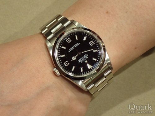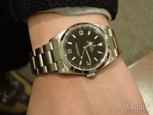 G様、この度はクォーク仙台店をご利用いただきまして誠にありがとうございます。G様がお選びになられた「Ref.114270」は、生産終了から10年以上経過した現在も高い人気を誇る、シンプルなデザインと、スマートなサイズ感が嬉しいケースサイズ36mm径のスポーツモデルでございます。数あるスポーツモデル中でも、特にシンプルなビジュアルは汎用性高く、カジュアルな服装との相性はもちろんのこと、ビジネスシーンにおいても大活躍間違いなしでございます!末永くご愛用いただけましたら幸いでございます。また、ご使用に際して気になる点がございましたら、しっかりサポートさせていただきますので、お気軽にお申し付けくださいませ。尚、私どもではブレス洗浄サービスを行っておりますので、仙台駅方面へお越しの際は、是非お立寄りくださいませ。どうぞ、今後とも変わらぬご愛顧を賜ります様、宜しくお願い申し上げます。 クォーク仙台店 沼澤
