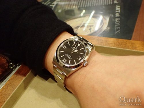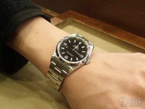 O様、この度はクォーク梅田店をご利用頂きまして誠に有難うございます。O様にご満足頂けるモデルをご案内出来て大変光栄でございます。今回ご購入頂きましたエクスプローラーI Ref.14270は1990年代の人気絶頂だった頃から2度のモデルチェンジを果たし、現在の最新型はサイズアップしておりますが、今となっては貴重な36ミリサイズのモデルとして改めて評価が高まっております。拘りをお持ちのO様にはピッタリではないでしょうか。シンプルなデザインは使い勝手も良く、長くご使用頂けるモデルですので何かお困りの事がございましたら気軽にお声掛けくださいませ。またのご来店を心よりお待ちしております。