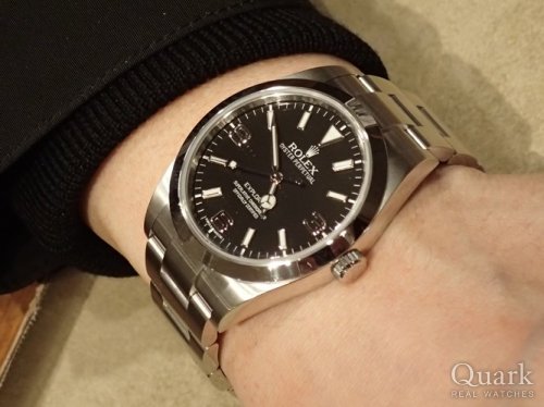 S様 この度はクォーク仙台店をご利用くださいまして誠にありがとうございます。ロレックスの中でも人気上位モデル、サブマリーナーとエクスプローラーI、悩んでしまうお気持ち、わかります!優柔不断の私でしたら、頭から煙がでてしまっていると思います(笑)。エクスプローラーIはどんな場所でもご愛用いただけることと存じます。毎日溺愛してあげてください♥2016年にダイヤルが変わり、それからは、生産終了となるダイヤルもとても注目されております。メタリックな輝きはシンプルながらも男らしくスタイリッシュにきめてくれます。とてもお似合いでございますよ!S様のロレックスライフが素敵な時間となりますよう、私もお手伝いさせていただきますので、気になることがございましたらどんな小さなことでも構いませんので、いつでもご連絡くださいませ。店頭にてブレス洗浄、サイズ調整を無料で承っておりますので、またお店に遊びにきてください。お仕事で辛いことがあったときには、エクスプローラーIを見つめて元気出してくださいね。そして、さらなるご活躍を私もお祈りしております。それでは今後とも末永いお付き合いのほど宜しくお願い申し上げます。