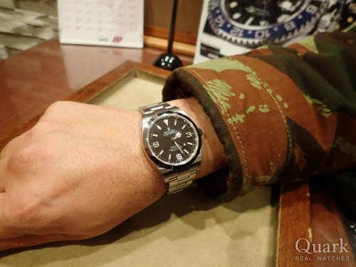 T様 この度は数ある時計店の中からクォークをお選び頂き、誠に有難うございます。気さくにお話し下さいましたT様。シンプルな時計をお探しということでエクスプローラーI(Ref.214270)をお求め頂きました。エクスプローラーIはON・OFF問わず、シーンを選ばずに使える万能さを秘めております。是非たくさんご使用頂きまして、今後サイズ調整・ブレス洗浄等ありましたらお気軽にお申し付け下さい。今後とも宜しくお願い致します。