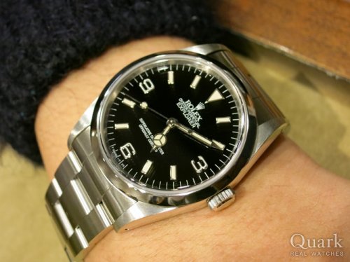 F様 この度はクォ―ク上野本店をご利用頂き誠にありがとうございます。今回はEXPLORER‐Ⅰ Ref.114270のご購入のお手伝いが出来た事、大変嬉しく思います。2010年に生産が終了してしまいましたが、小振りな36mmケースが現在でも多くの方に支持をされ多くの方が愛用されている人気モデルです。今回は最終モデルに近い年式の為、ルーレット刻印が施されているモデルとなり、114270の中では数少ないエクスプローラーとなります。ご使用頂きしっかりとサポートさせて頂きますので今後、お時計の事で何かございましたらお気軽にご相談下さいませ。宜しくお願いいたします。