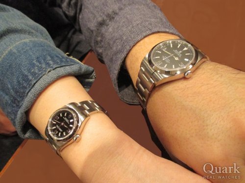 エクスプローラーI でも、現行型と旧型で悩んでいましたが、現行の39ミリだと大きくて目立ってしまうと思い、こちらに決めました。 ちょうど横浜店のブログで良いものを見つけて、すぐに問い合わせをして、実際に見て気に入ったので、決断しました。