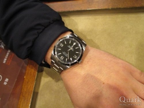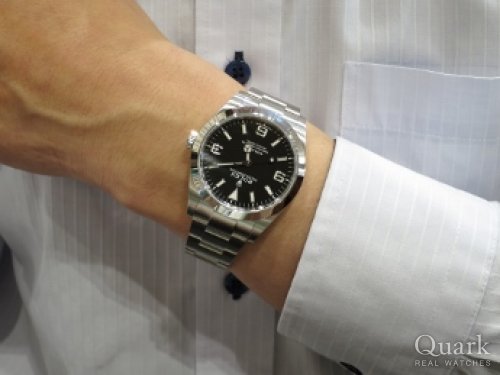 M様 この度はクォーク神戸店をご利用頂き、誠にありがとうございます。M様の人生初の大きなお買い物、そのお手伝いが出来、大変光栄でございます。お選び頂きましたエクスプローラーIは、シンプルなデザインでありながら、高級感もあり、ロレックスの中でも1・2を争う人気モデルです。スーツスタイルからカジュアルまで幅広く使えるデザインが魅力の一生使える実用モデルですので、M様の相棒として、活躍する事と存じます。369に夜光塗料が使われる2016年の新型ダイヤルのお話をさせて頂きましたが、ブラックアウト仕様は新型よりシックな印象であり、M様の雰囲気によくお似合いでしたので、末永くご愛用くださいませ。無料でブレス洗浄なども行っておりますのでお近くに来られた際には、職場の皆様と是非お立ち寄り下さいませ!またのご来店を心よりお待ち致しております! クォーク神戸店 柳原・川田