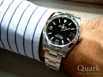 デイトジャストと悩みましたが、シンプルなデザインが格好良かったので選びました。ロレックスには憧れがあり、家族も着けているので検討していましたが、クォークさんの値段と保証で決めました。エクスプローラーはロレックスの中でも定番モデルなので初めて買うには丁度いいと思いました。 着けた感じはもの凄く良いです!! めちゃくちゃ良いです!! 笑顔が止まりません!! 杉野さんの対応が非常に良かったです。 笑顔が素敵でした!