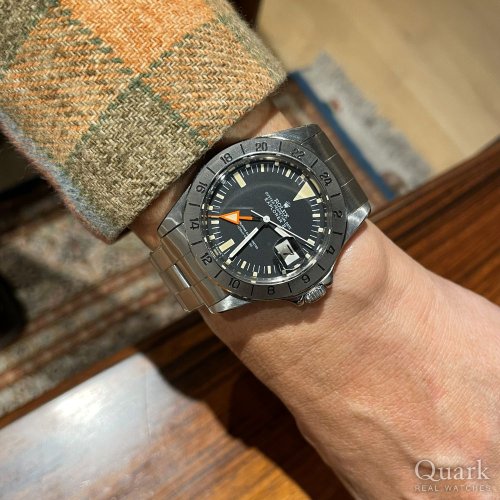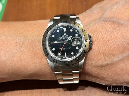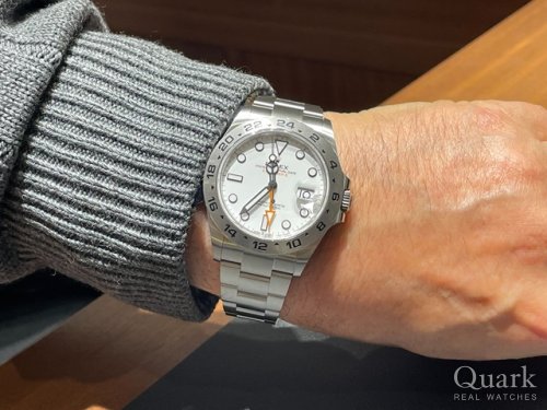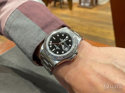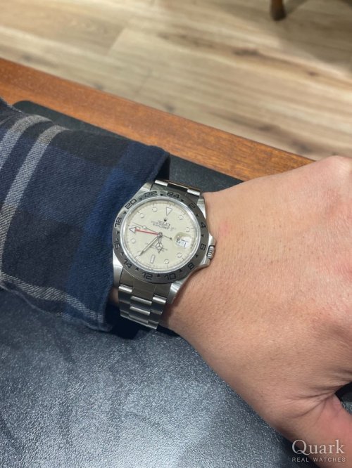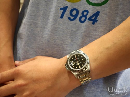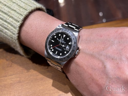 K様、この度は私どもクォーク仙台店をご利用いただきまして誠にありがとうございました。この度お選びいただきました『EXPLORER II Ref.16550』は、生産期間がとても短く、個体数が非常に少ないモデルです。昨今では黒文字盤をお見かけする機会も少なくなりましたが、今回K様がご来店の際に店頭に並んでいたのは、何やら運命的なものを感じます!太字ベゼルやシングルバックル、雰囲気抜群の焼け感などヴィンテージらしさ充分ですが、サファイアクリスタルやハイビートムーブメントの採用など、高い実用性を誇る点も見逃せないポイントです。ヘアライン仕上げの部分が多く、無骨な印象も高い支持を受ける要因となる魅力的な1本ですので、是非末永くご愛用いただけますと幸いです。なお、お時計の生まれ年、84年のロサンゼルスオリンピックのTシャツを、今回のオーナーズボイスの撮影に合わせていらしたK様のユーモアに感心させられました!また、当初ご用命いただいておりました生まれ年のロレックスをご案内できる機会を楽しみにしております。アフターサービスなどの面でもしっかりとサポートいたしますので、気になる事などございましたらお気軽にご相談くださいませ。これからも末永いお付き合いのほど、よろしくお願い申し上げます。