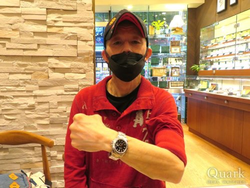 先月、久保さんから購入した親類からの 紹介で来店し、久保さんの丁寧な接客に 好感を得て購入を決めました。 あとモデルと致しましては、初ロレックスで、色々と時計を見させて頂き、Ref.16550のアンティークっぽい感じの太字ベゼルや雰囲気に一目惚れし決めました。