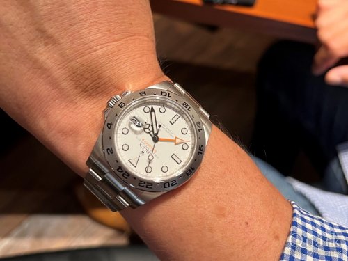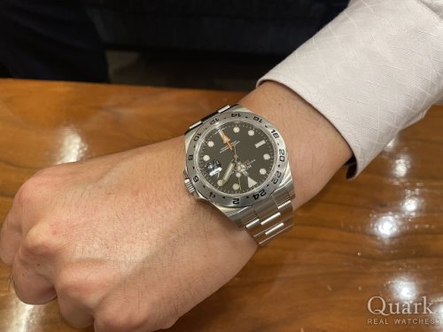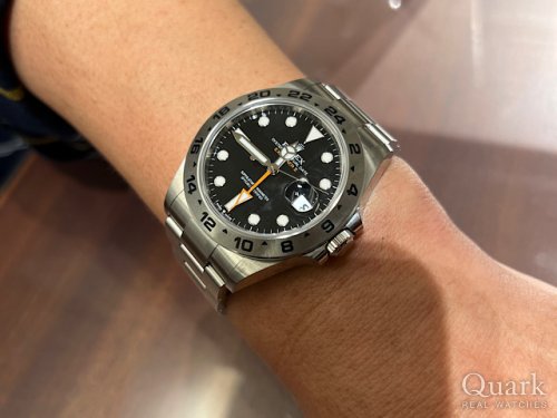 S様 この度はクォーク名古屋店をご利用頂き、誠にありがとう御座います。ご購入頂いた現行モデル EXPLORER II Ref.226570は、前モデルと比べ一見大きな違いはないものの、比べると細かな変更が多く、よりブラッシュアップされております。また視認性、実用性が高く、普段使いから幅広くご愛用頂けるモデルで御座います。これからはお持ちのデイトジャストやIWCと用途に併せて使い分けを楽しんでください。アフターサービスに関しても、サポートさせて頂きますので、今後もご相談など御座いましたら、私までお申し付け下さいませ。栄にお越しの際は、ブレス洗浄を兼ねて遊びにいらして下さい。今後とも末永いお付き合いの程、宜しくお願い致します。