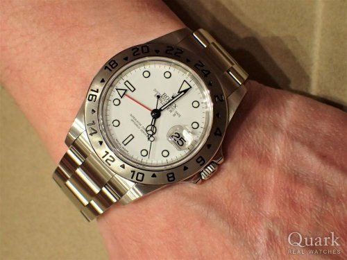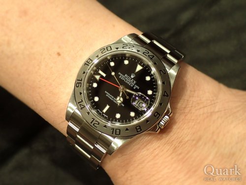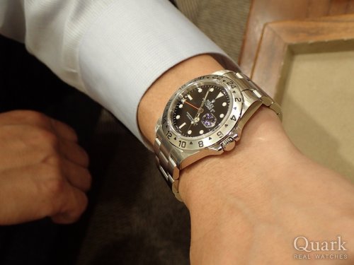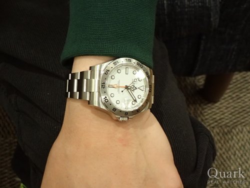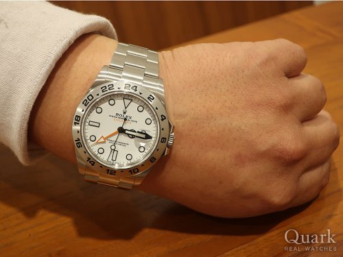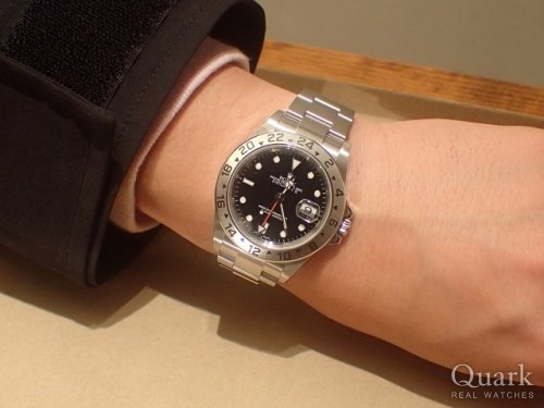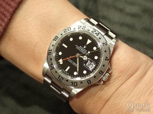 H様 この度はRef.16570 EXPLORER IIをお買い求めいただき誠にありがとうございます。アメカジがお好きなH様にEXPLORER IIが大変お似合いでございました。お買い求めいただいたトリチウム夜光とシングルバックルの組み合わせは現在非常に人気のカテゴリーで、流通量も激減しております。研磨によるケース痩せや伸び感のないブレスレット、良い状態の文字盤と文句の付け所がない素晴らしい個体をご案内でき、大変うれしく思います。お持ちのSEA-DWELLER、EXPLORER Iと一緒に素敵なROLEXライフをお楽しみください。お時計をご使用いただいて何かご不明点等ございましたらお気軽に私(田村)までお問い合わせ下さいませ。今後とも末永いお付き合いの程、よろしくお願い申し上げます。 クォーク新宿店 田村